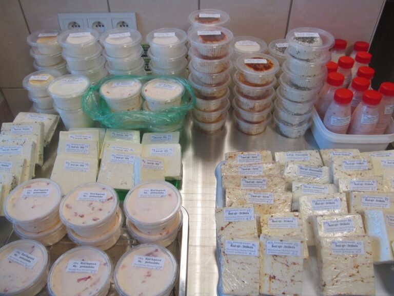 Prodej kozích sýrů, mléka a jogurtů u nás probíhá od března do listopadu. Přes zimu budou k dostání zrající bochníky sýra.